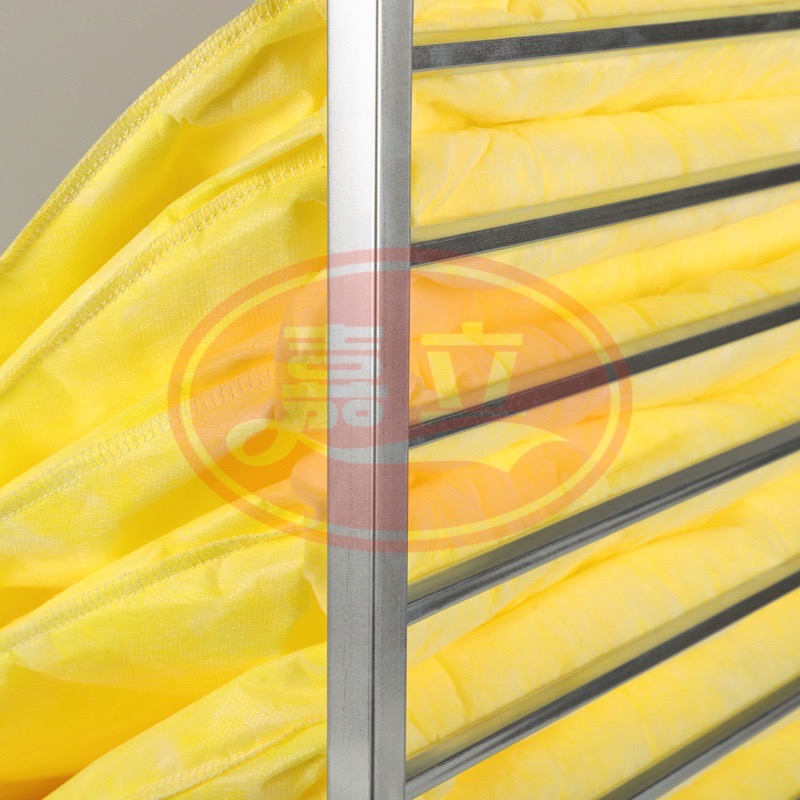 5、结构独特。外框采用专用铝型材或镀锌板框,便于完全回收、利用、优质U型铝合金压条,使滤袋结构阻力低,使用